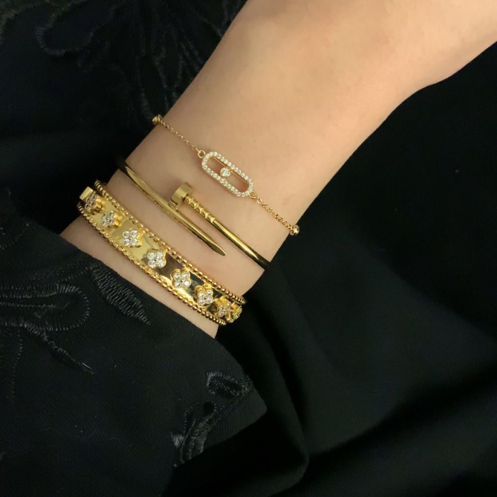 • الجمع بين الأساور: يمكنك دمج عدة أساور للحصول على إطلالة عصرية ومتجددة.